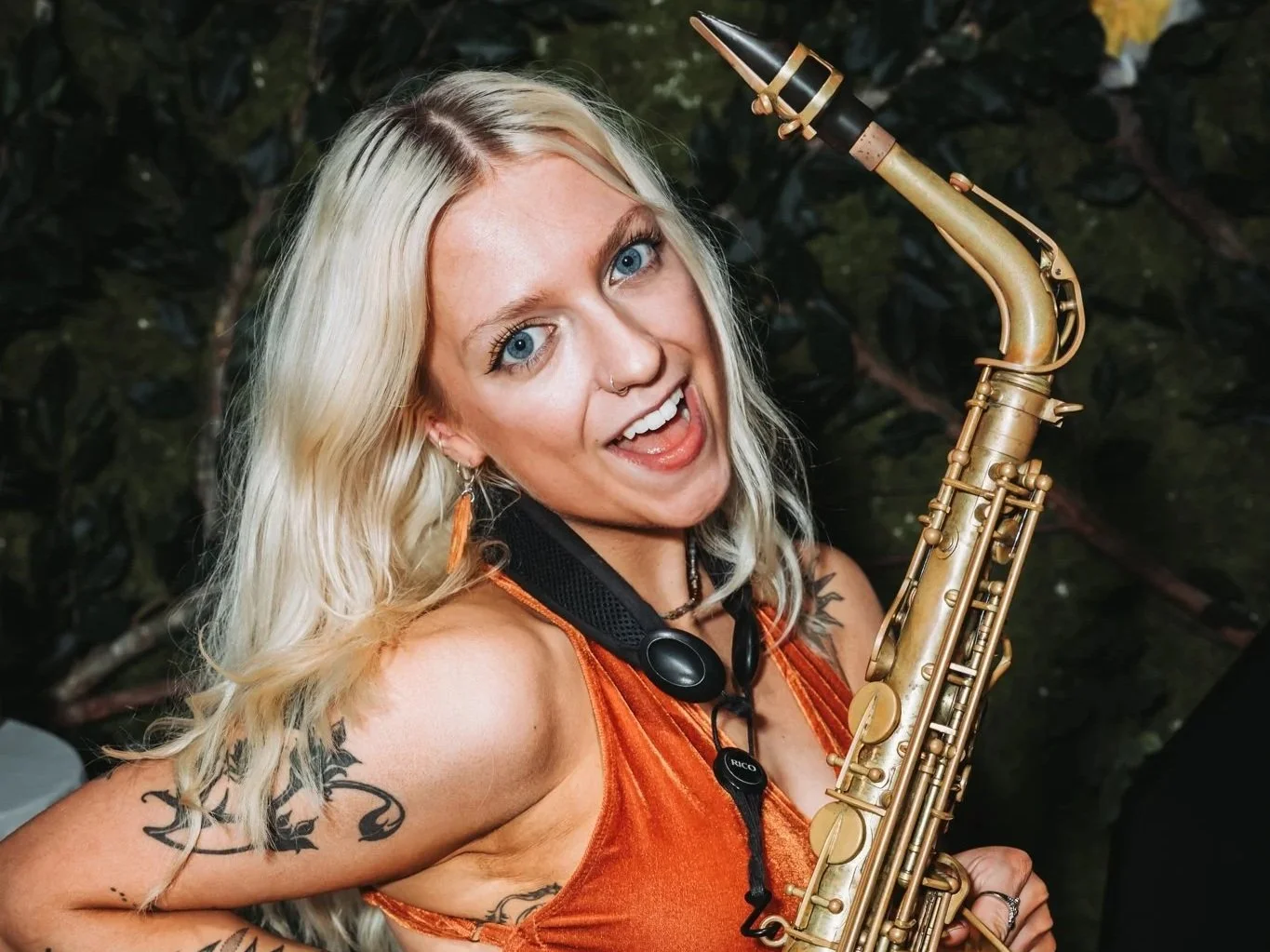 Alongside her classic gold saxophone, Jem often performs with her eye-catching pink sax, adding a distinctive visual flair to her shows. Her sparkling style and infectious enthusiasm help create unforgettable moments at every event.