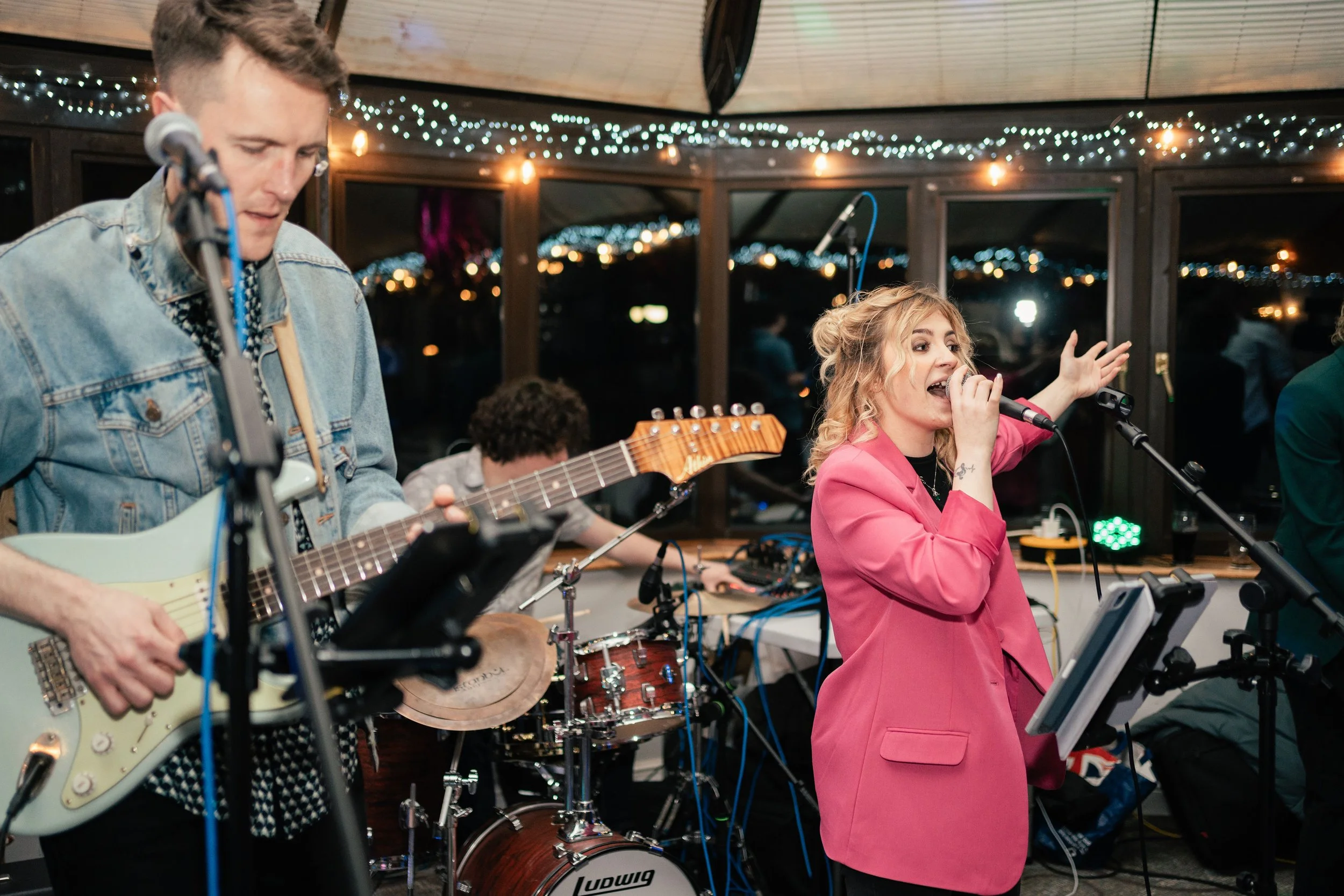 Want to level up? Add their acoustic set for your drinks reception or bring in their horn section for extra punch. They'll learn your special song for free, handle the DJ duties between sets, and bring pro-grade sound and lighting to make your event shine.